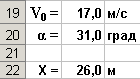 условий: =B19^2*SIN(РАДИАНЫ(2*B20))/9,81 |